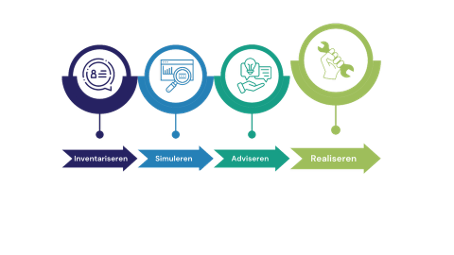 De Verduurzamingscoalitie verbetert bij elke nieuwe klant in vier fasen het volledige stroomsysteem:
